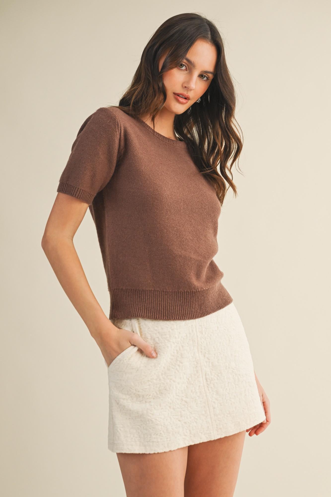Mocha - Short Sleeve Crew Neck Sweater