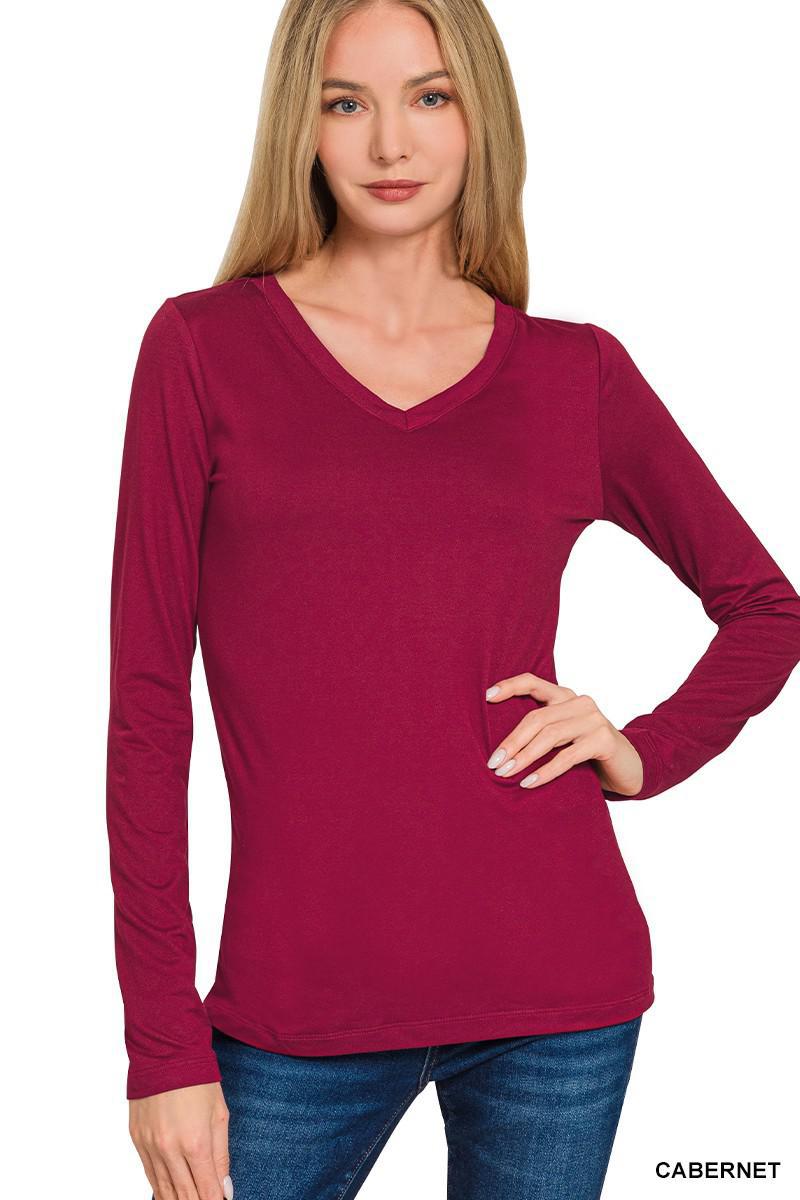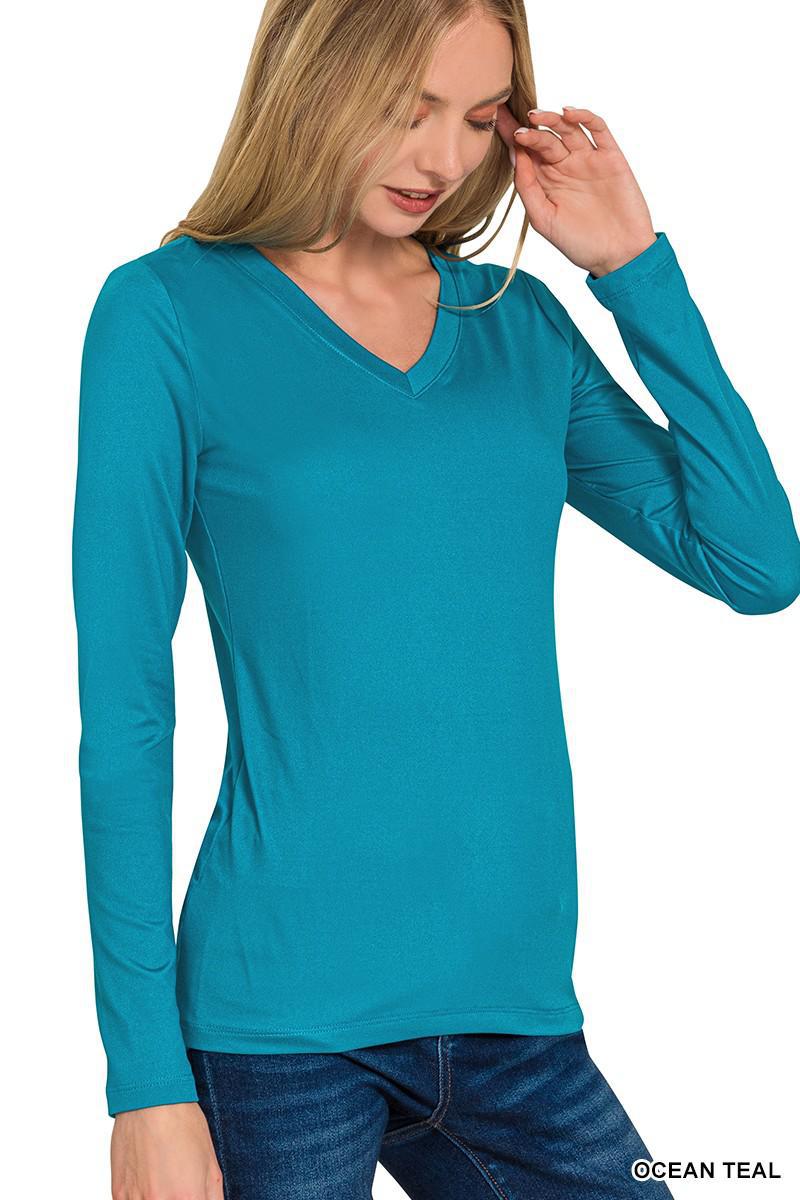 Brushed Microfiber Long Sleeve V-Neck Tee