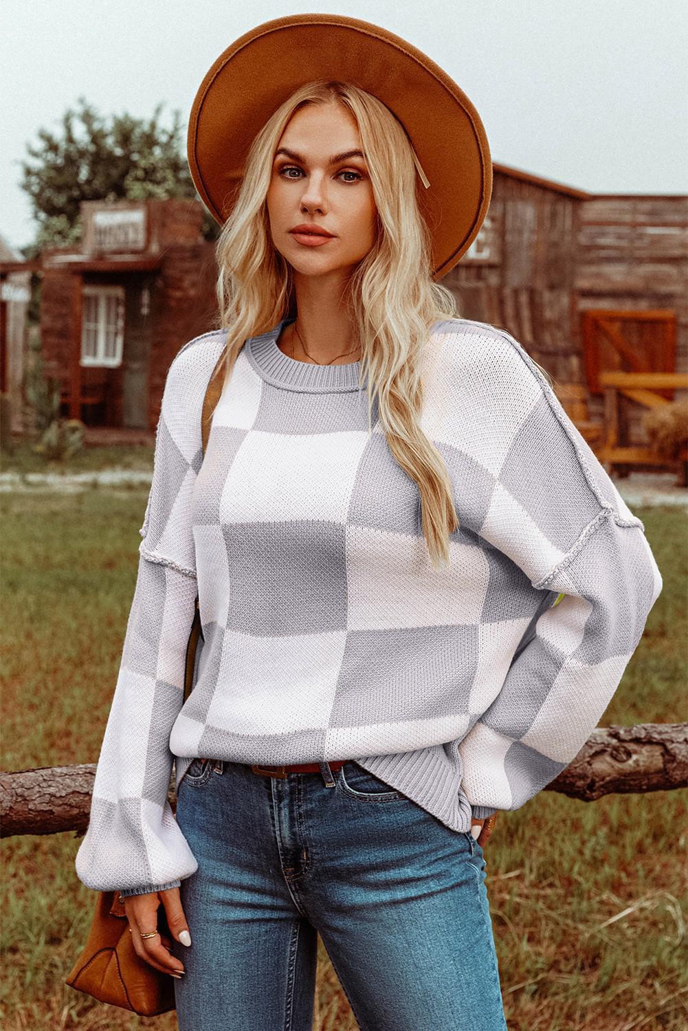 Checkered Sweater - Gray