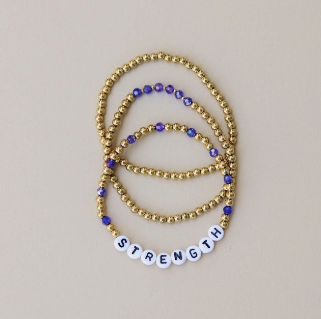 Three stackable bracelets with dipped 14k gold & purple stone beads.